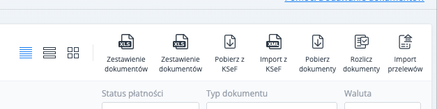 • Pobierz z KSeF – możliwość pobrania dokumentów z systemu KSeF,
