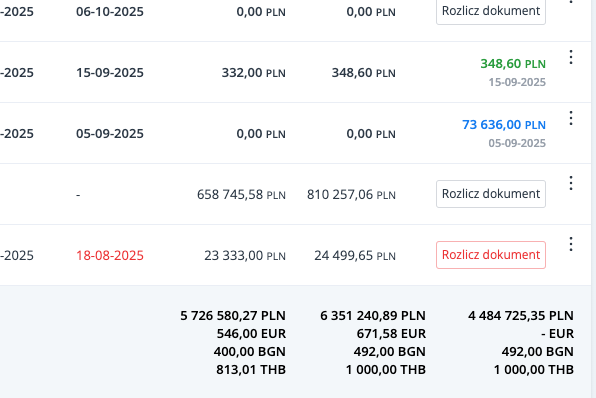 Widok listy dokumentów został rozszerzony o szybki podgląd łącznych kwot płatności, co ułatwia analizę danych finansowych.