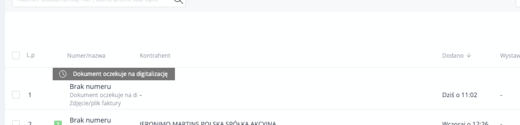 Klienci mogą teraz zobaczyć status przetwarzania dokumentu (OCR) bezpośrednio w systemie.